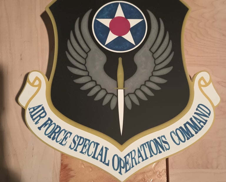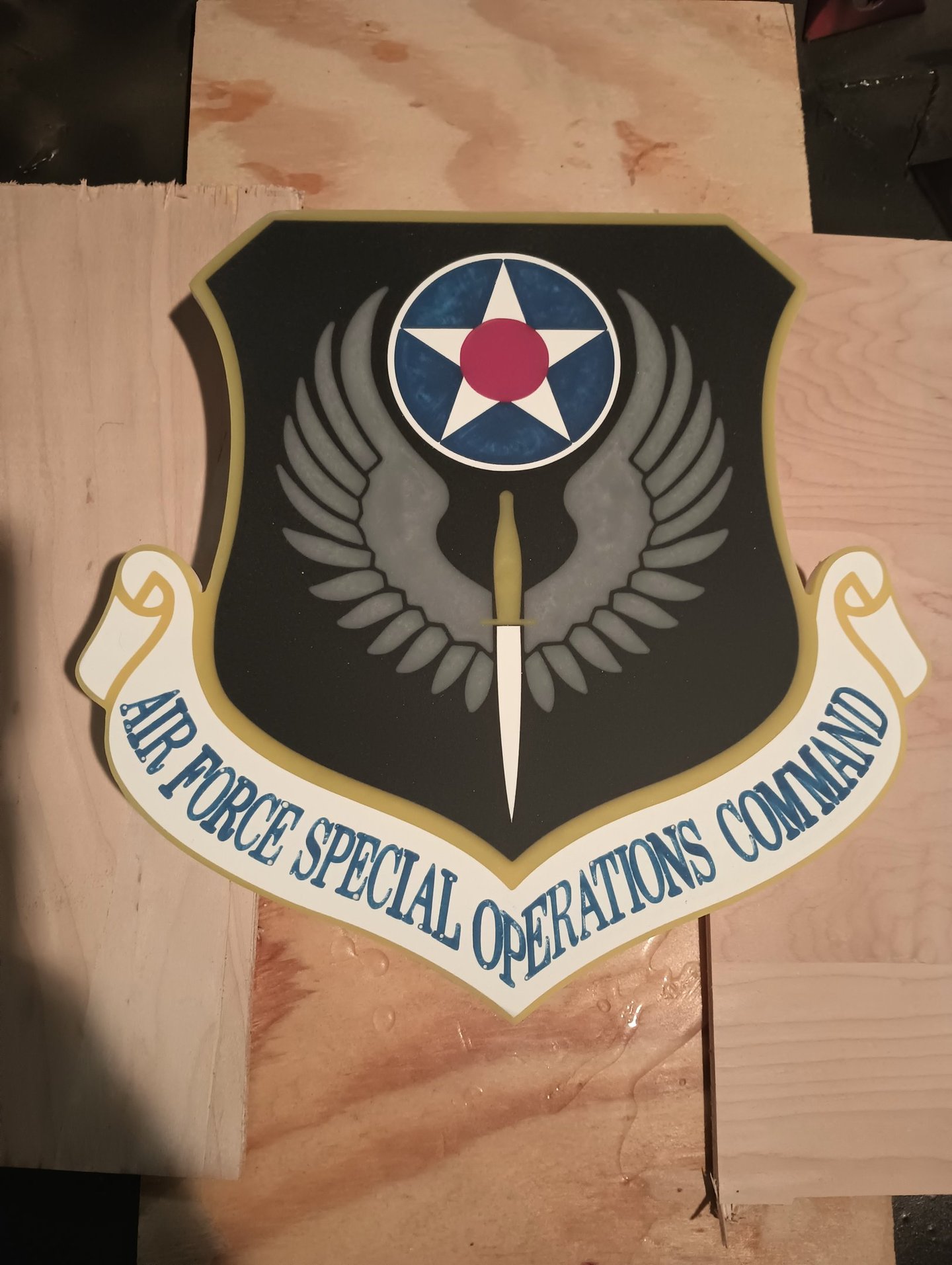 This design was taken from a military patch and then made into an 11" epoxy inlaid wall hanging. This can be done with most any idea you can dream up.