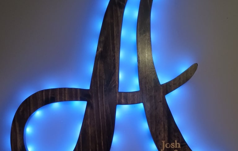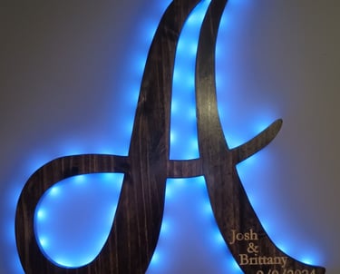 Instead of a stuffy wedding guest book that you'll never look at again, we can make a large wall hangable monogram that your guests can sign using a paint pen. You'll have a keepsake that will hang in your home for years.