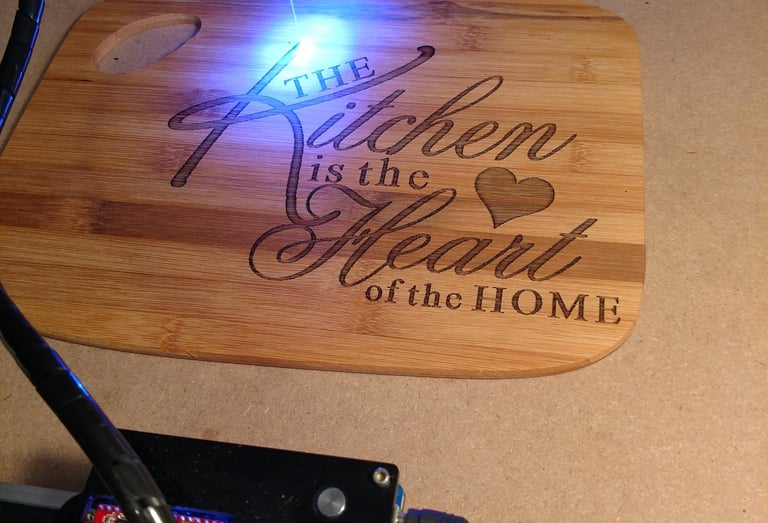 We are Duane & Jacquie Aldrich. We started as a fairly successful hobby jewelry business and wanted to expand by adding laser etching to our jewelry. With metal lasers being expensive, we decided to try etching on wood to be sure we could learn this new process. Once we tried it, we couldn't stop. We found we really enjoyed working with wood and decided to give CNC a try. So, we bought the cheapest CNC we could afford to again, give it t a try. After 2 months we had paid for that CNC and had outgrown it. So, we jumped in with both feet and bought a 5'x5' CNC, then another 29"x24" two years later. We've always reinvested in our business as much as we can and now, we're up to 5 different styles of laser and 2 CNCs that keep production going and can handle most any design we can come up with.